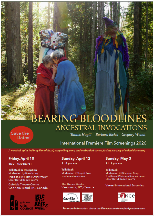 We are now in the editing and formation part of the project and will open with a screening at the Dance Centre in Vancouver in April 2026, also in the spring we will be shown by the Gabriola Historical Museum. Then we will show it on-line to reach a wider audience.